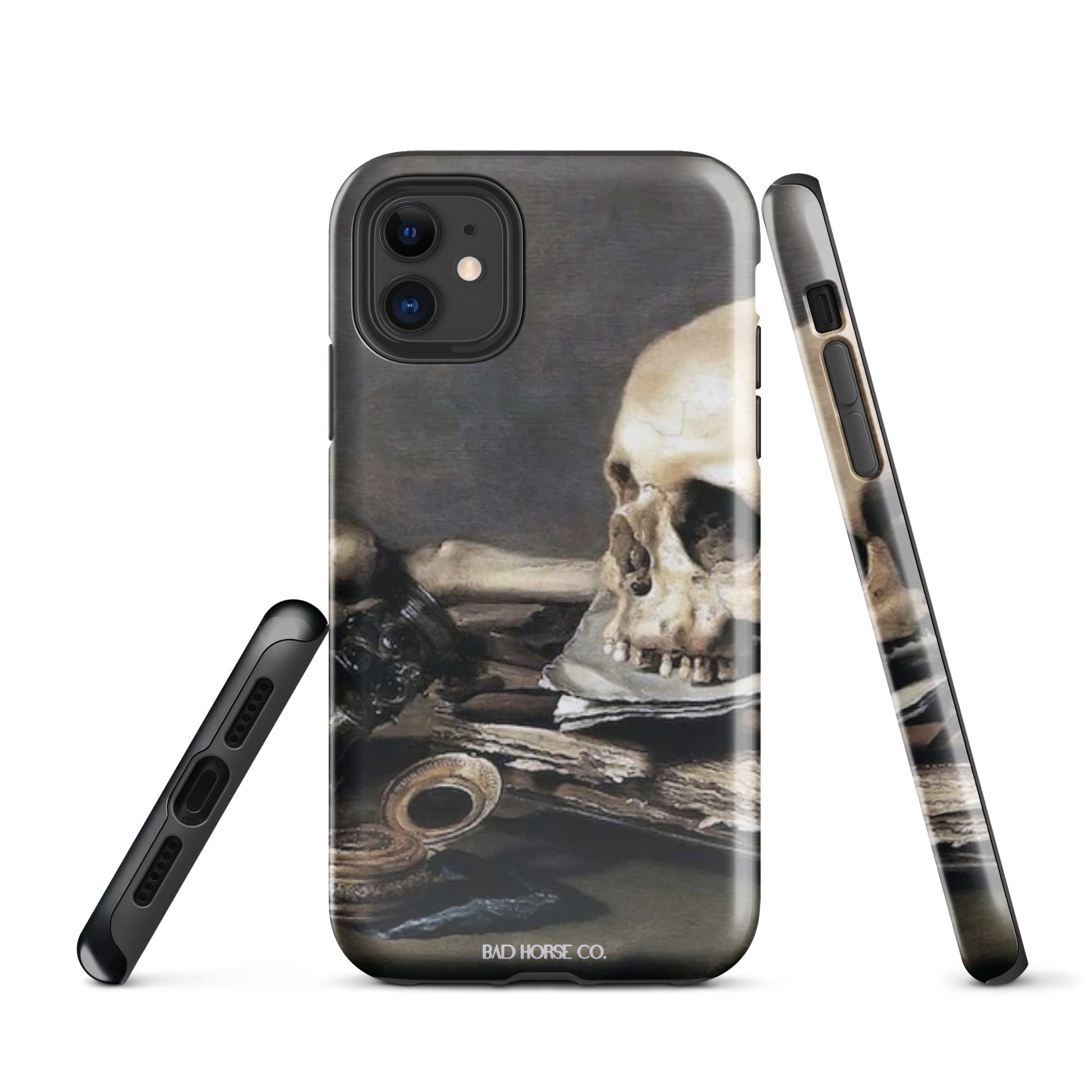 The Vanitas genre, particularly popular in the Netherland's, uses images of death juxtaposed with items that represent earthy pleasure, such as books, to emphasize the inevitability of death. This still life is by Pieter Claesz.