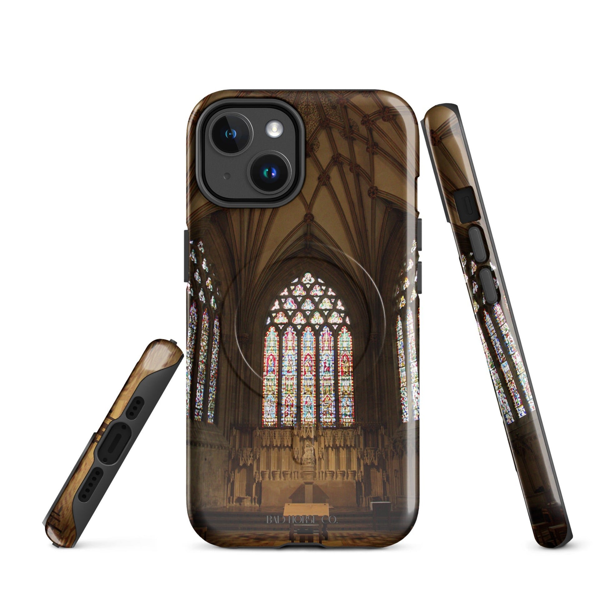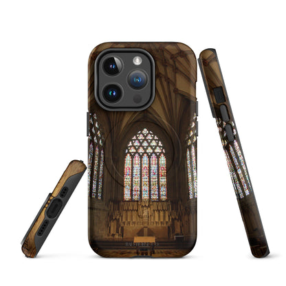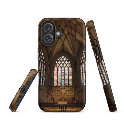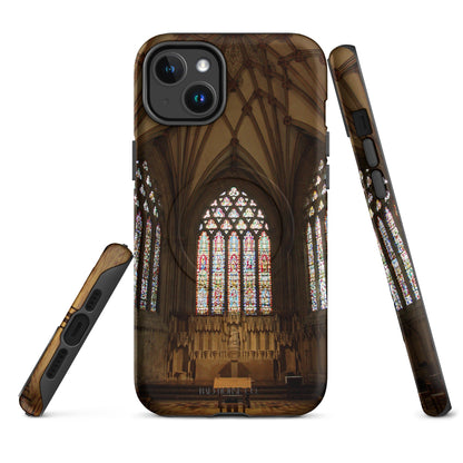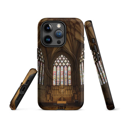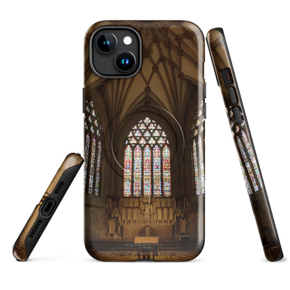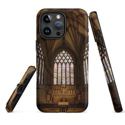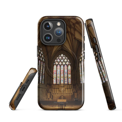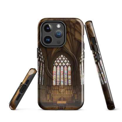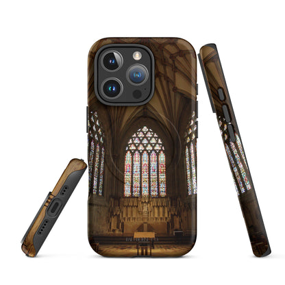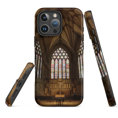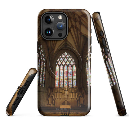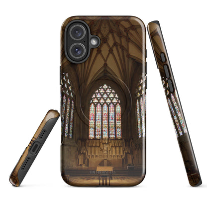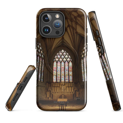 York Minster church has one of the largest stained glass windows of its age. This phone case captures the lovely view of just a small part of this English medieval cathedral.
